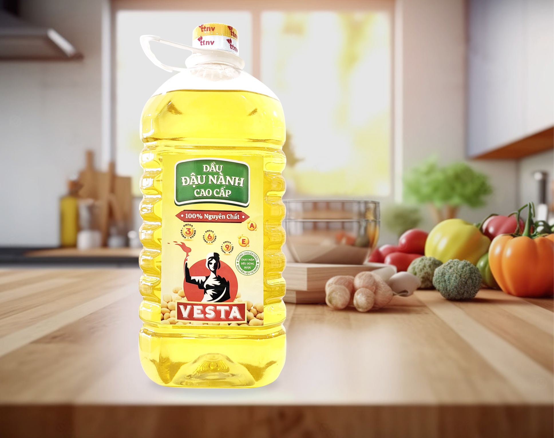 Dầu nành cao cấp VESTA cung cấp dồi dào Omega 3.6.9 giúp tăng cường trí não, tăng sức đề kháng và ngăn ngừa bệnh tim mạch. Thêm Vitamin A, E giúp bảo vệ tế bào da khỏi các gốc tự do, giúp giảm thiểu các dấu hiệu lão hóa và giúp da trông khỏe mạnh hơn.
